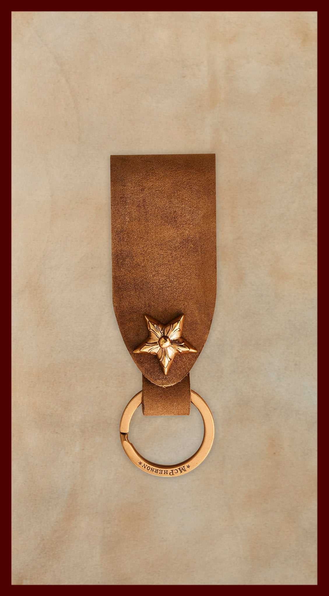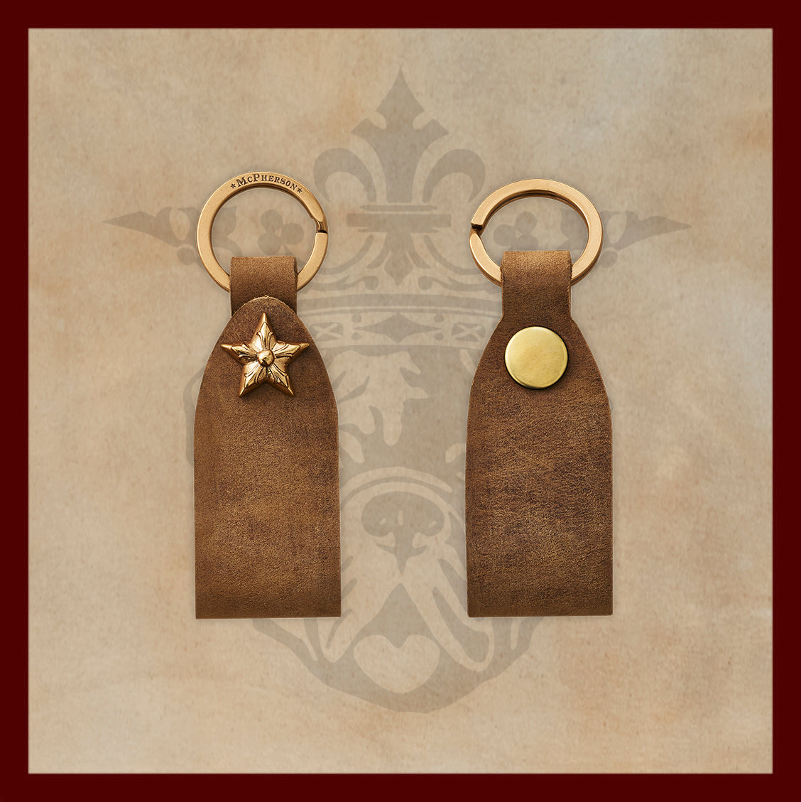 • • Solid brass McPherson star snap closure and key ring