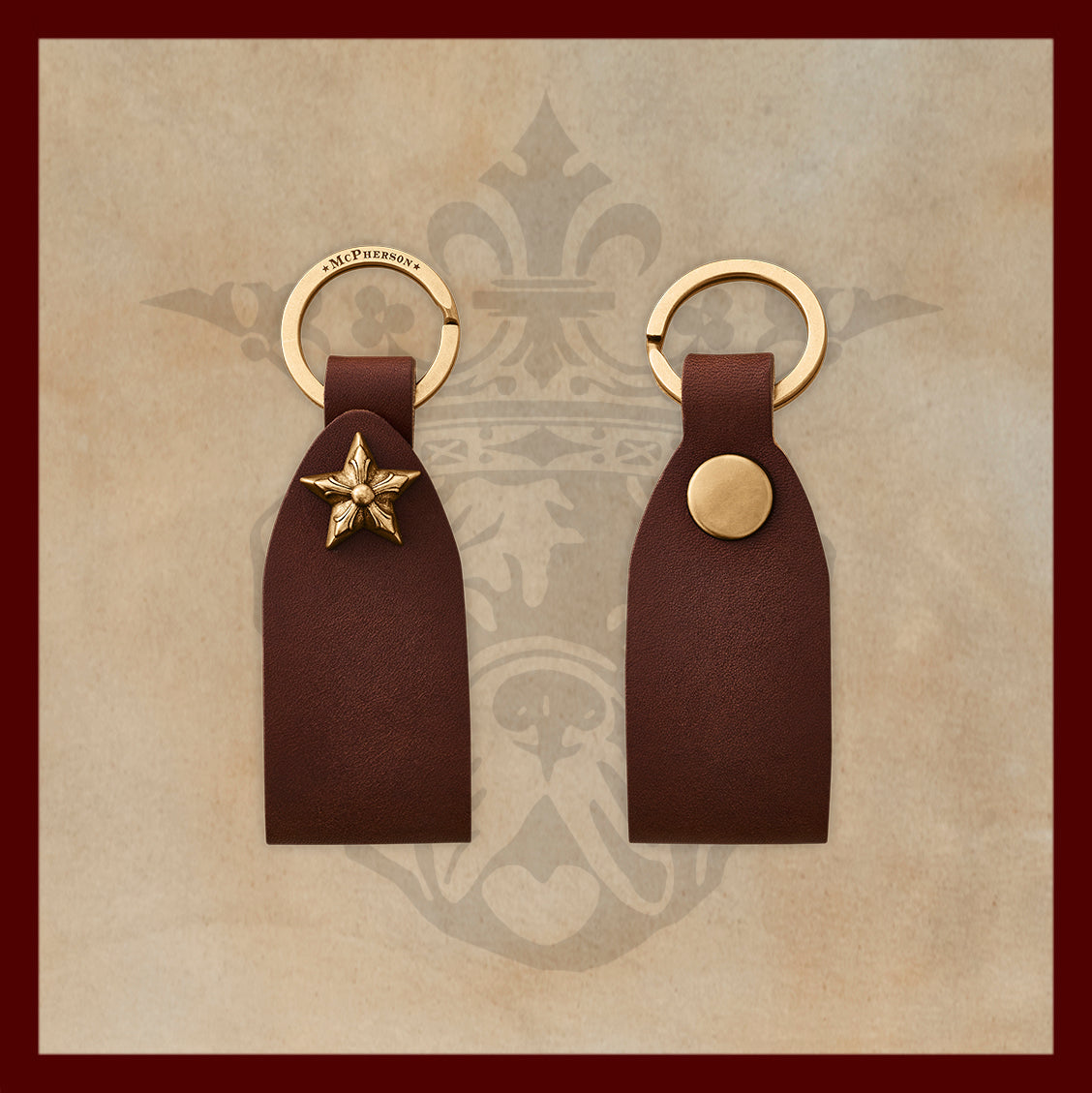 • Solid brass McPherson star snap closure and key ring