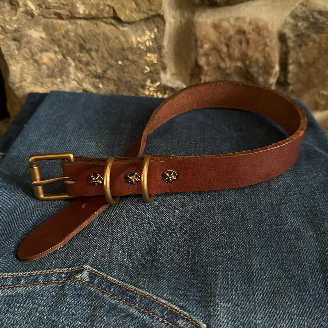 • • Fitted with solid brass Chicago screws and roller buckle