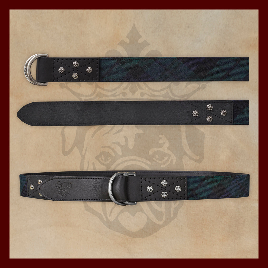Otis Scottish Wool Green and Navy Plaid Leather D-Ring Belt