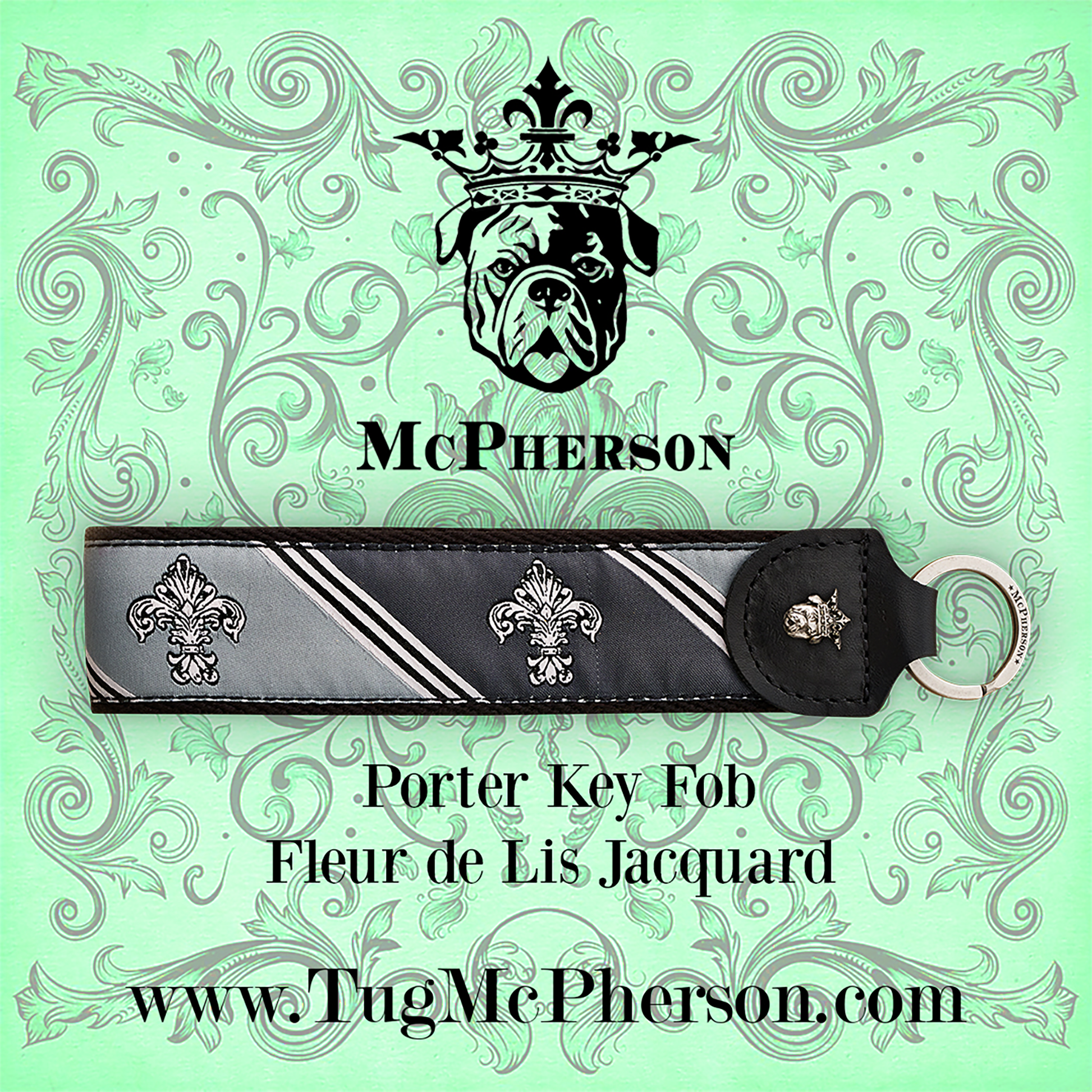 The Porter Key Fob features McPherson’s original designed woven jacquard patterns and finished with leather trim and Tug’s head decoration. Made by hand in the USA.