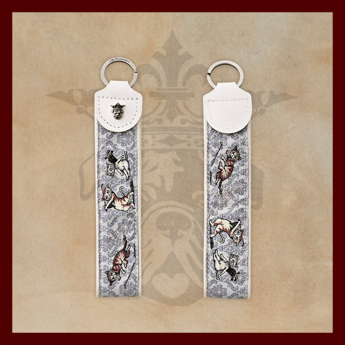 The Porter Key Fob features McPherson’s original designed woven jacquard patterns and finished with leather trim and Tug’s head decoration. Made by hand in the USA.