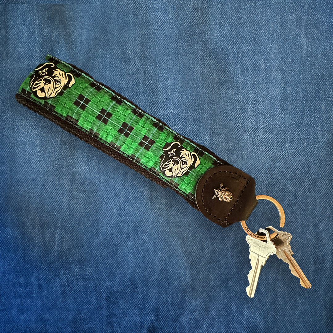 The Porter Key Fob features McPherson’s original designed woven jacquard patterns and finished with leather trim and Tug’s head decoration. Made by hand in the USA.