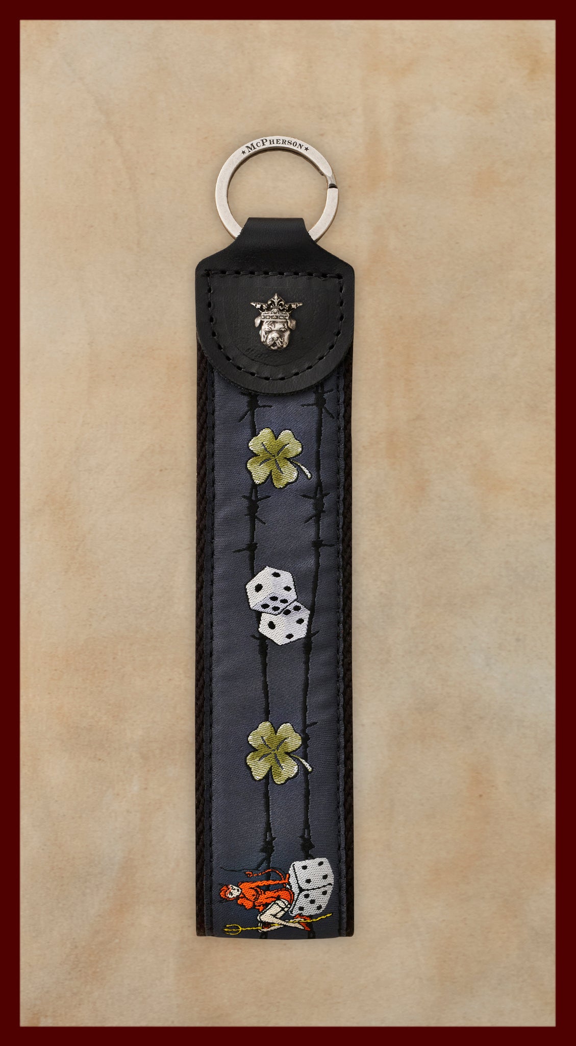 The Porter Key Fob features McPherson’s original designed woven jacquard patterns and finished with leather trim and Tug’s head decoration. Made by hand in the USA.