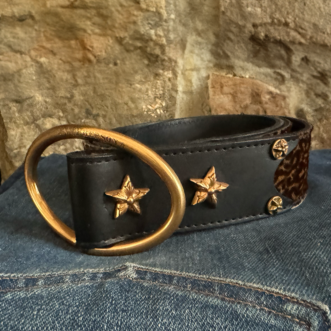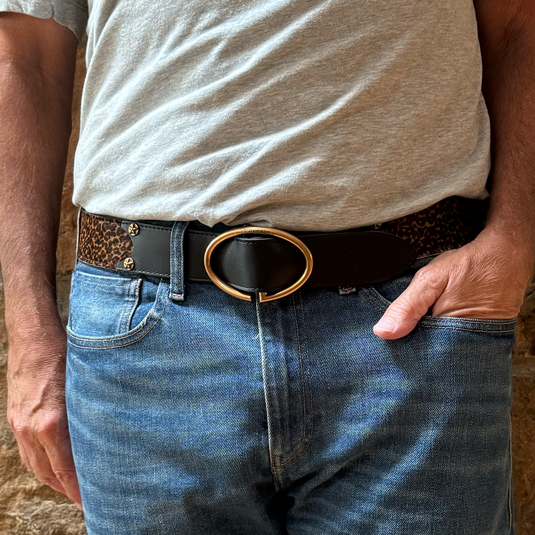 • Hair-on cowhide is backed with Italian vegetable tanned top grain leather strap
