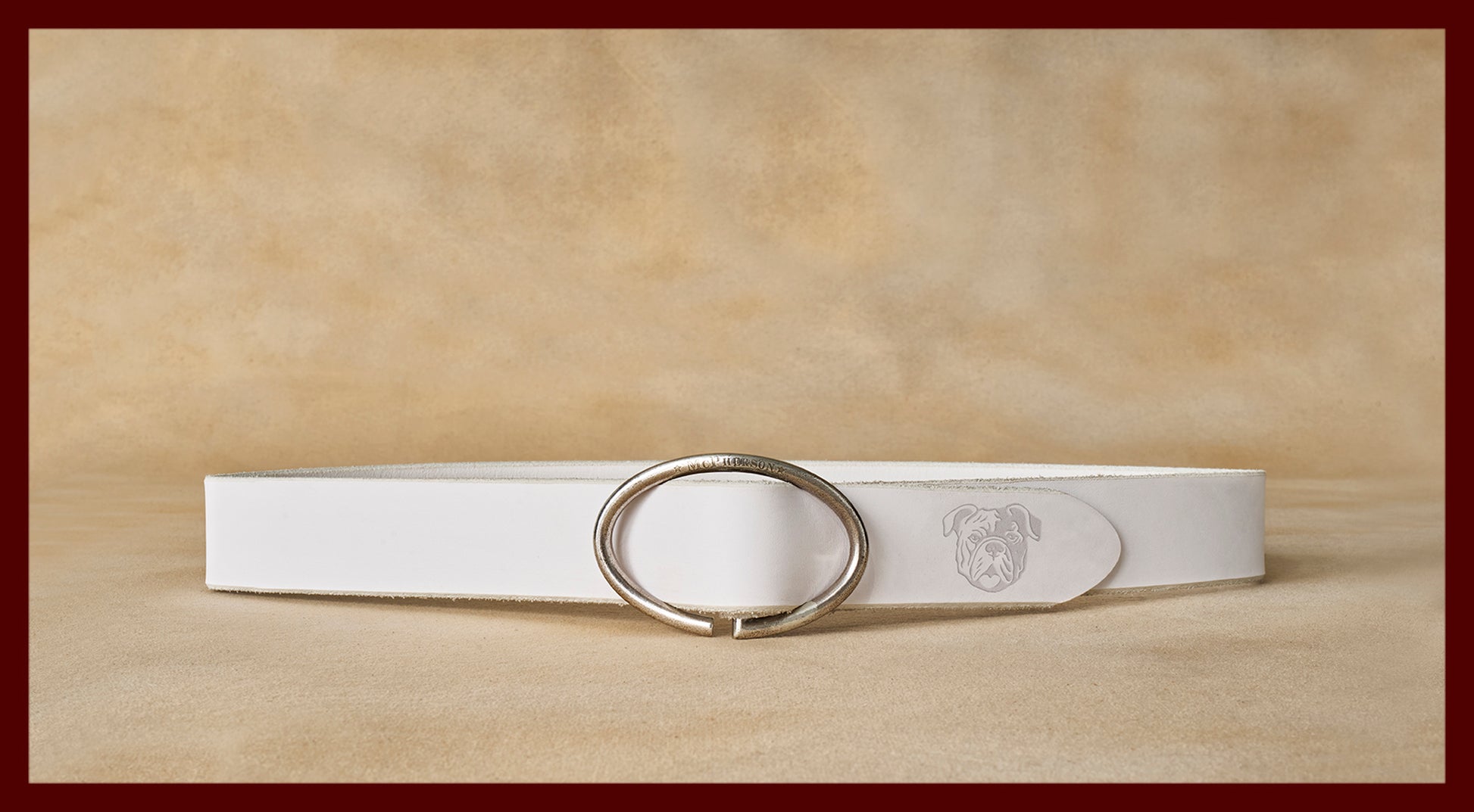 Vegetable tanned top grain cowhide strap sourced at the finest tanneries in Italy and fitted with our iconic Rufus elliptic buckle and Chicago screws. Variations in leather color and texture are natural, ensuring each belt is unique. Made by hand in the USA.
