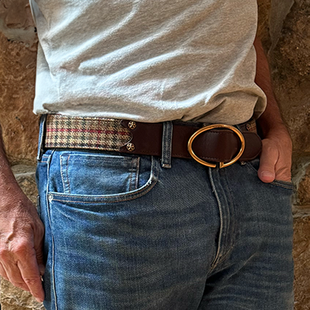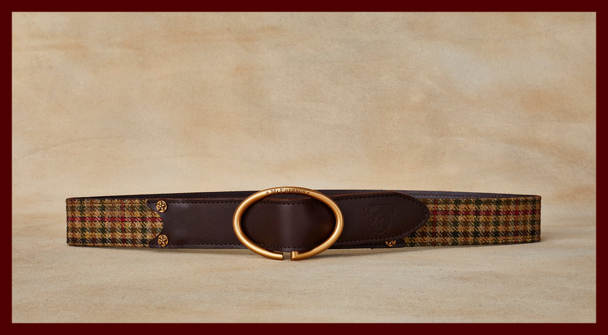 Rufus Elliptic Brown Scottish Wool Check Leather Belt