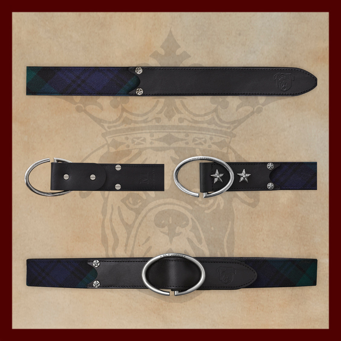 Rufus Elliptic Navy and Green Scottish Wool Plaid Leather Belt