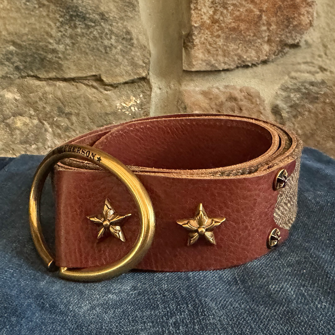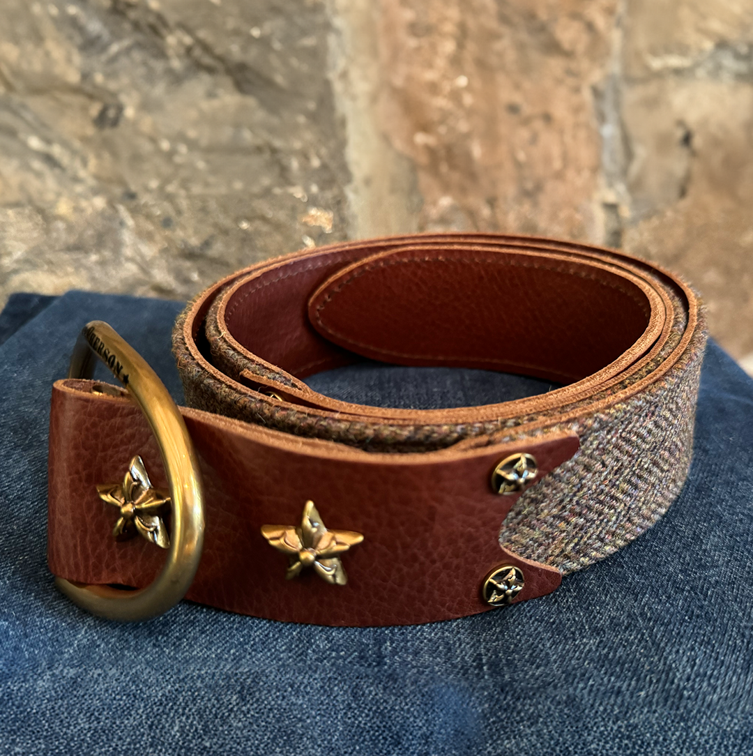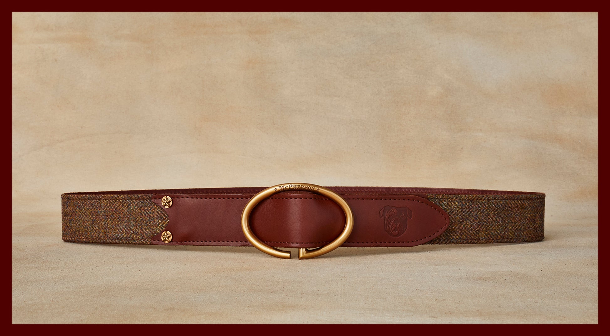 Scottish wool tweed combined with Italian vegetable tanned cowhide fitted with our iconic Rufus Elliptic buckle and Chicago screws. Variations in leather color and texture are natural, ensuring each belt is unique. Made by hand in the USA.