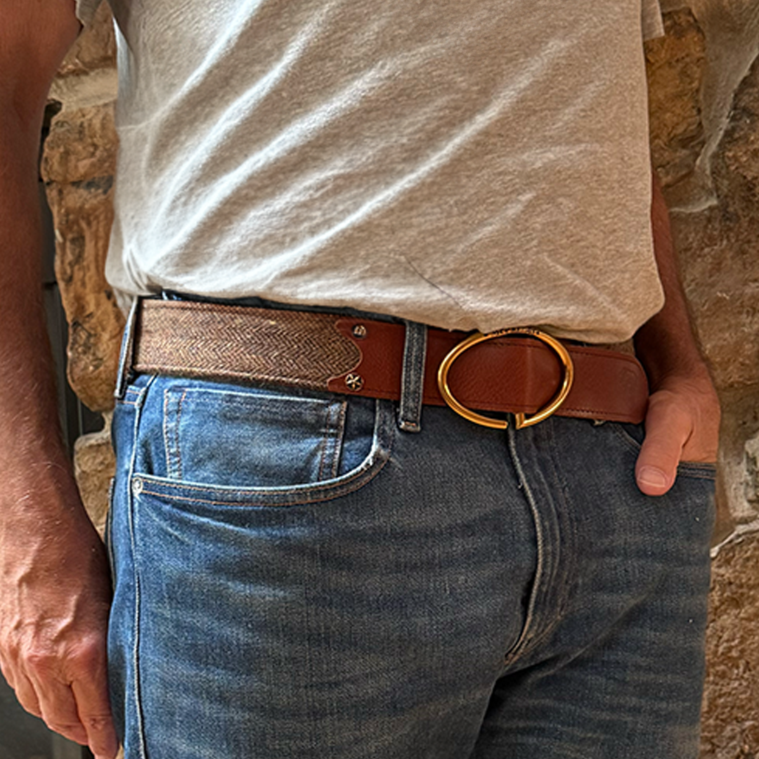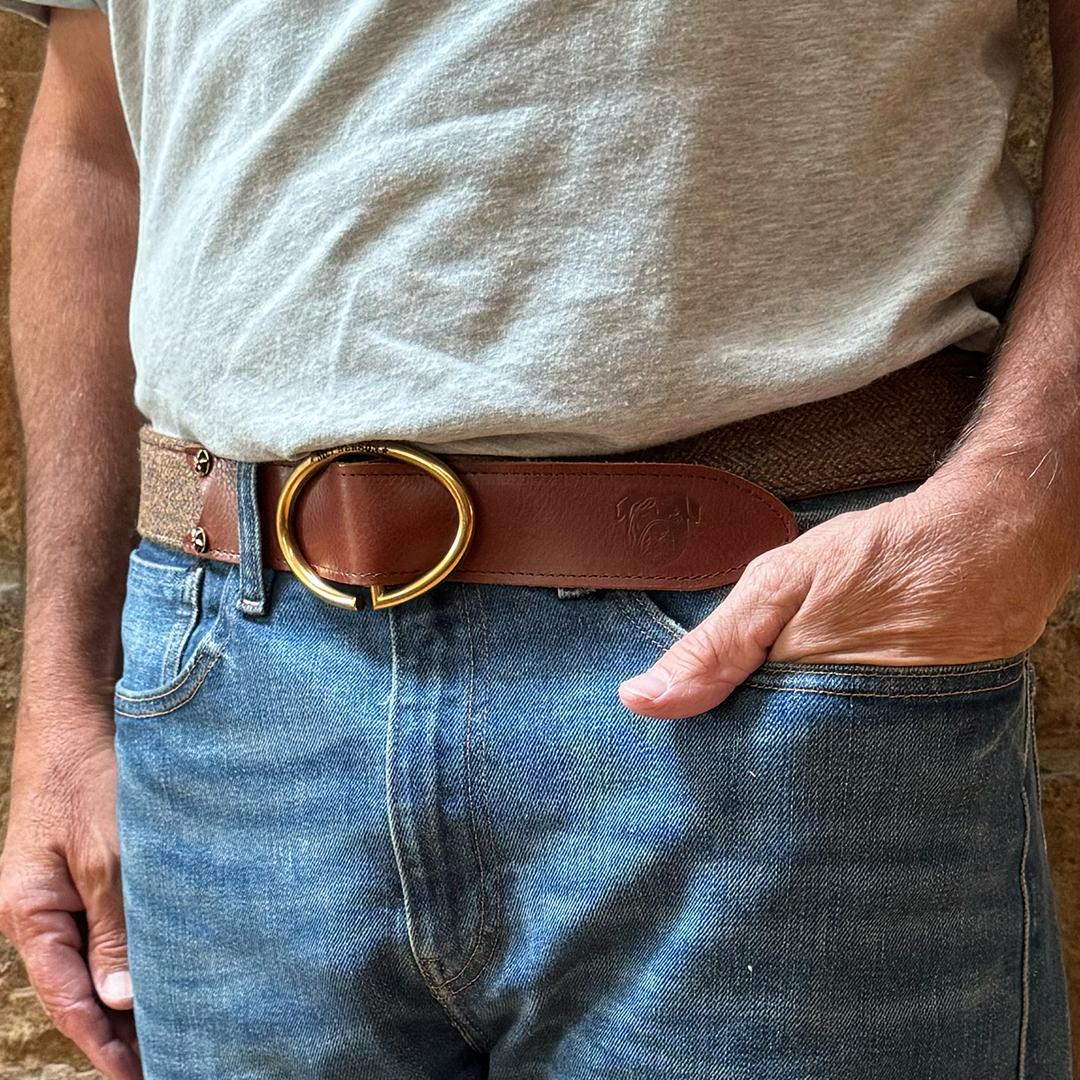 Rufus Elliptic Brown Scottish Wool Herringbone Leather Belt