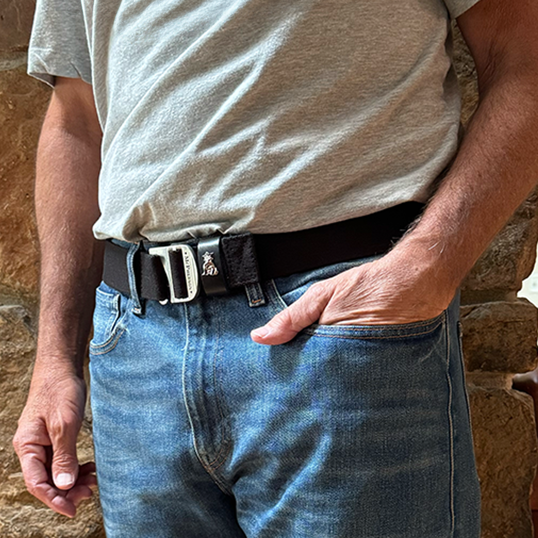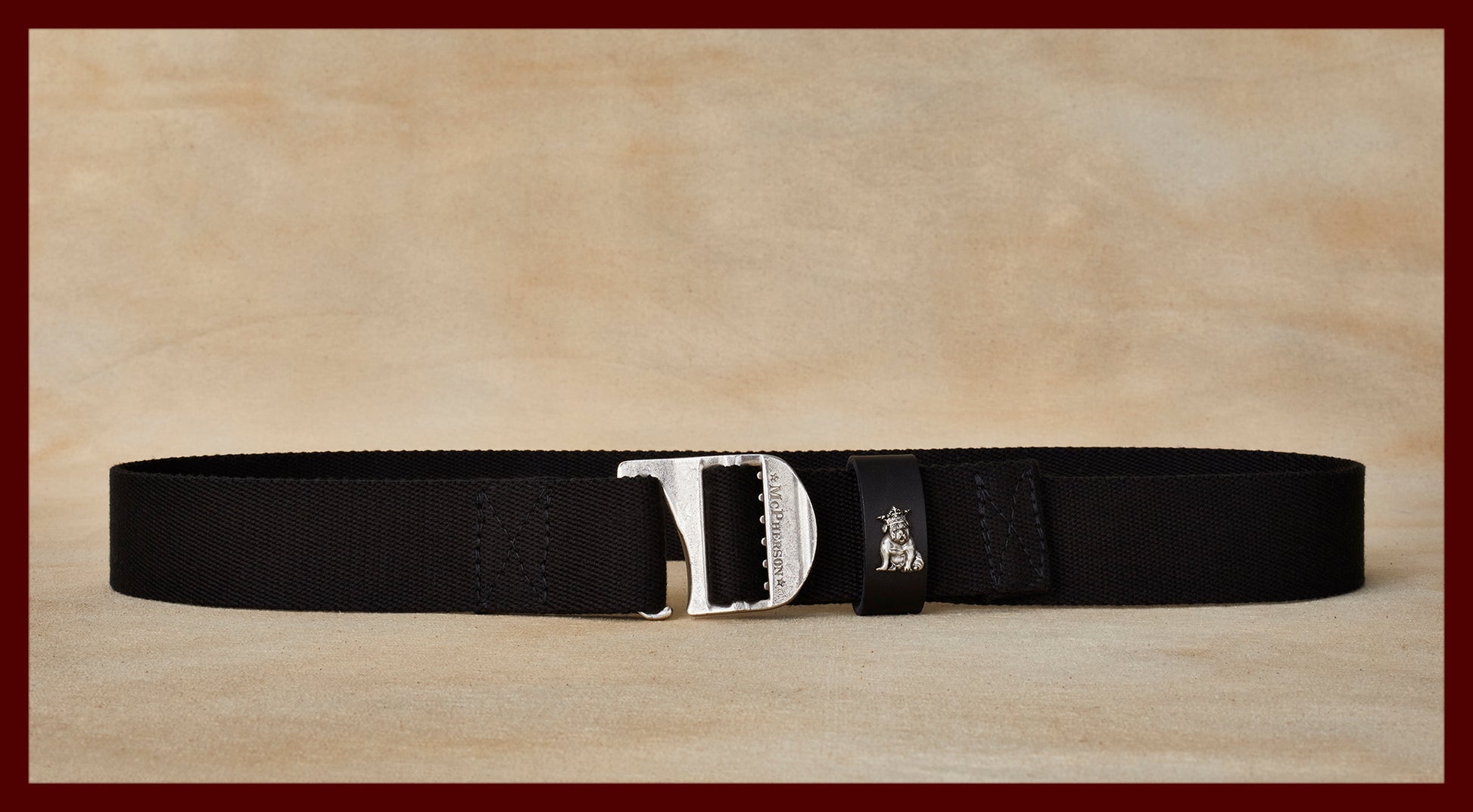 Custom developed durable polyester web belt fitted with our solid brass tank buckle. This webbing is waterproof and stain resistant. Fit to your liking once and never bother again. Made by hand in the USA.