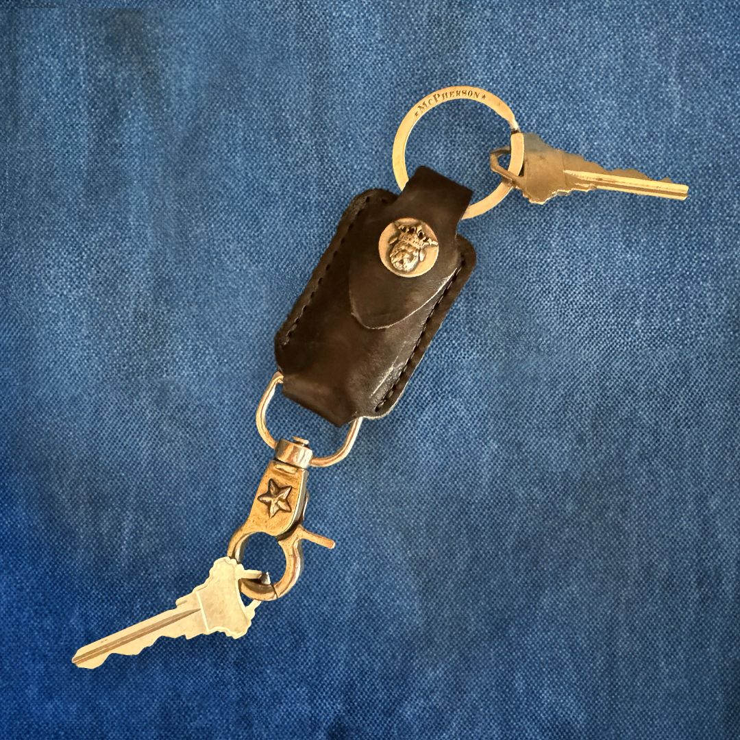 When checking in to your favorite hotel or restaurant the Tilman Valet Key Clip is a necessary accessory. The piece is fitted with both signature key ring and dog leash clip for easy handoff to the valet. Variations in leather color and texture are natural ensuring each piece is unique. Made by hand in the USA.