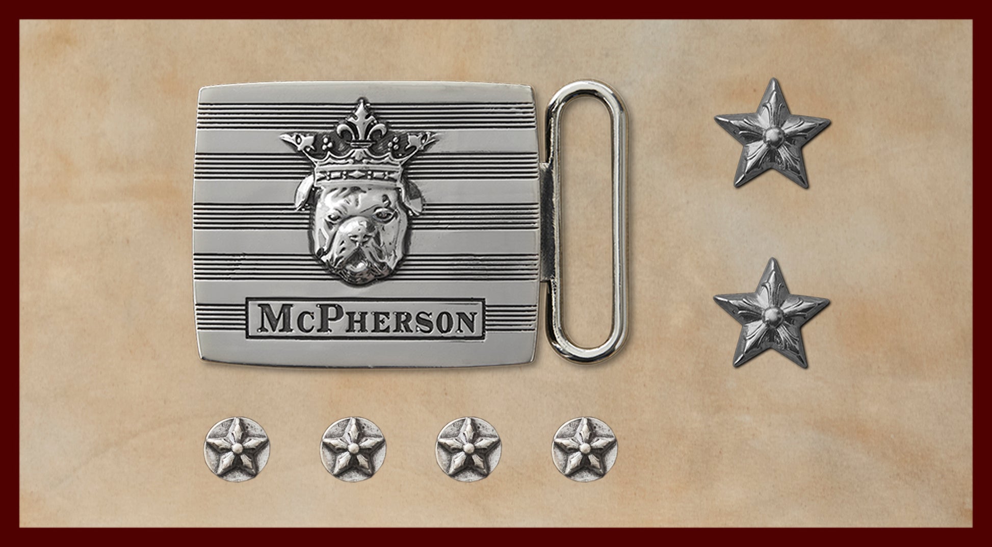Tug McPherson offers a way to expand the look of your handcrafted McPherson belt by offering buckle sets in both burnished silver and rich gold finishes.  Both options are constructed in solid brass and will last a lifetime. Simply unscrew the six Chicago screws that hold your original buckle and leather tab in place, remove your original buckle and Chicago screws, and exchange with your alternative finish buckle set.  Sets include the buckle, two large Star Chicago screws and 4 small Star Chicago screws in the finish of your choice.